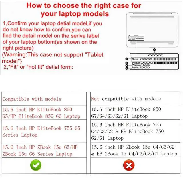 ^^ Warning: NOT compatible with 15.6 inch HP EliteBook 850 G4/G3/G2/G1 & HP EliteBook 755 G4/G3/G2 & HP EliteBook 750 G2/G1 Series laptop and HP ZBook 15u G4/G3/G2 & HP ZBook 15 G4/G3/G2/G1 Series laptop and HP other Pavilion/ENVY/Spectre/ProBook series laptop and other brands laptop {{Warning: Most of returned because of choosing wrong model, please confrim your laptop model}}. ^^ This protective cover is made of the high-quality PU leather, characterized by the beautiful appearance and fine hand feeling; the inner-layer soft cashmere can better protect the laptop. ^^ Unique design with two elastic rubber bands could solve the problem of loose cover effectively in the process of using laptop (This case not support "Tablet model"). ^^ Unique liner design for laptop cooling, this case do not affect the heat dissipation of the laptop. Our store have 500+ laptop models cases, search more laptop models's case, please search "Alapmk + your laptop model".