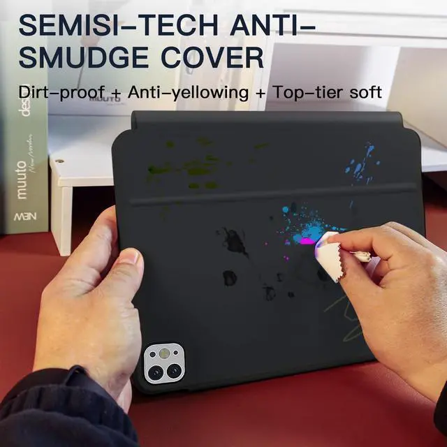 ^^ Stain-Resistant Surface: The SemiSi-tech technology is combined with PU leather, enabling you to easily wipe off the stains on the surface. Enjoy the soft and sweat-proof texture as well as the fluffy lining, without the worry of scratching your air 11 iPad.