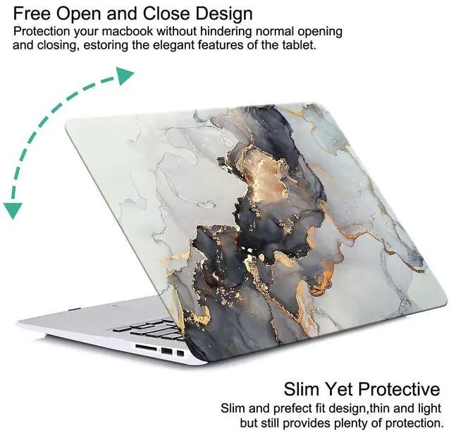 Features: Made of durable hard plastic, it protects your laptop from scratches and simple wear and tear. The silicone keyboard cover protects your keyboard from fingerprints, spills, dirt, etc. Has a cutout for the logo. Fully access to all ports, buttons, and features. Vents on the bottom piece let the device release heat, helping keep your laptop cool. Four non-slip silicone feet keep your laptop firmly in place. 2-piece, snap-on design. Snug fit, easy to put on and remove. Ultra-thin and lightweight, it won't add any noticeable weight or bulk to your laptop.