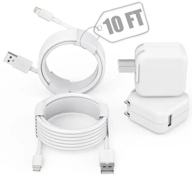 Content: 2Packs USB Fast Charging iPad Chargers Block 2Packs 10Foot Apple MFi Certified Lightning Cable Cord Professional Customer Service