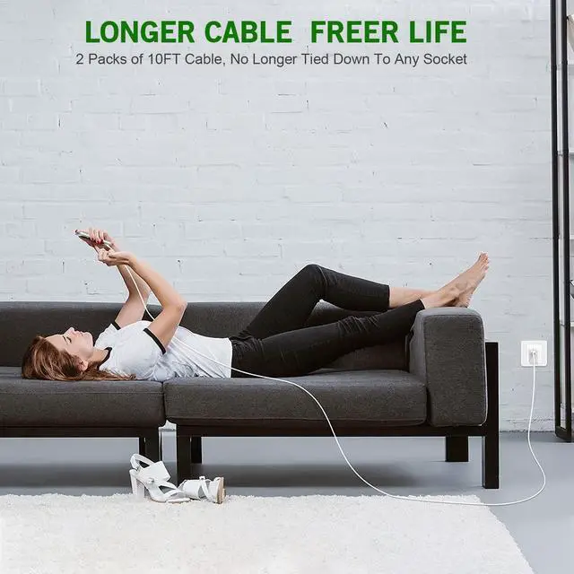 Foot Long Lightning Cord: Enjoy the freedom to charge your iPhone while charging with this Extra Long 10 Foot Cable. Apple Approved MFi Certification ensures 100% flawless compatibility with Apple devices. No error message pops up. Apple iPad