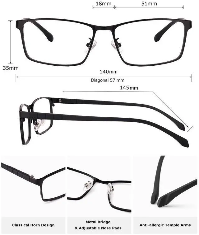 Best Blue Light Glasses for MenZanyLens rectangular blue light blocking glasses are made of polished and durable metal. Comfortable TR90 temple arms and adjustable nose pads. The black rectangle frame fits round-shaped face, diamond-shaped face and oval-shaped face. Great blue light glasses for men using digital device for long hours. ^^ Premium Polycarbonate Clear Lens The material of the lens is resin. Unlike other bluelight glasses mens on the market with heavily yellow tinted lens, ZanyLen blue light blocker glasses are clear lens without any color distortion, protect UV400 and reduce glare from sunlight, computers, TV, smartphones effectively.