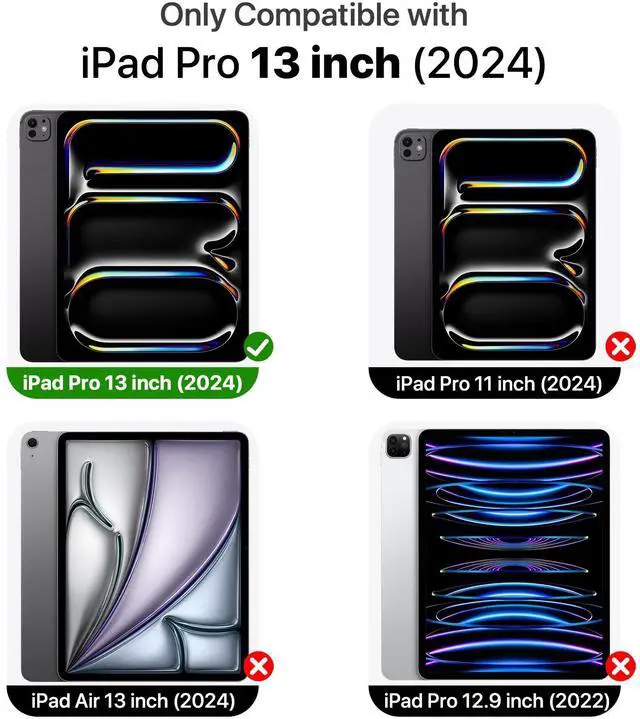 [Compatible with] This VAKS Smart Cover case for iPad Pro 13 inch M4 2024, 7th Generation, Not compatible with iPad Pro 11 inch M4 2024 5th Generation and any other devices. Please check the back bottom of your iPad to find the model number. ^^ [Premium Material and Full Protection] This iPad Pro 13 inch case is made of high quality PU leather and TPU, front and back covered by soft PU, the inside durable TPU can fix your iPad and protect its back cover and four corners, maximum protect your iPad from drop and scratch, the surface is soft and silky to provide a comfortable touch to the skin.