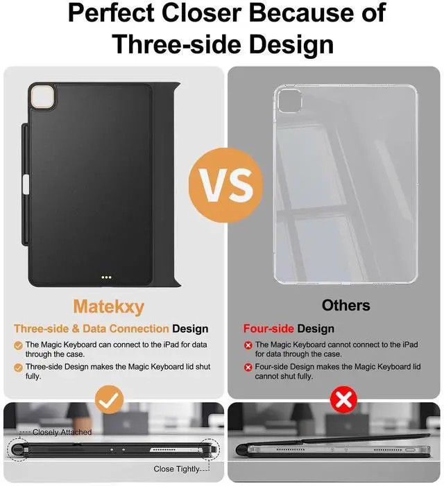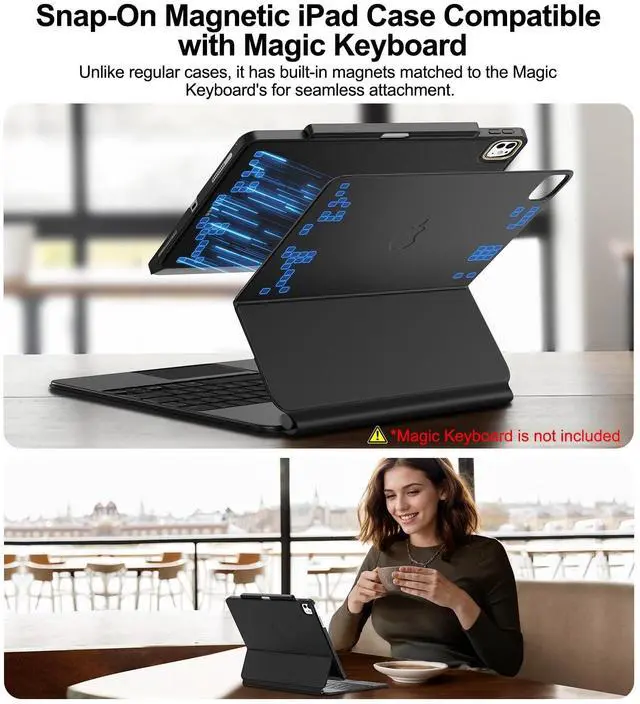 Compatible: Seamlessly works with the Apple Magic Keyboard, allowing pass-through charging and magnetic attachment for the Apple Pencil without removing the case. ^^