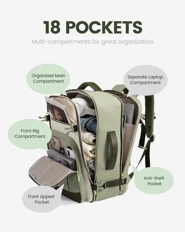 Capacity: Featuring 5 main compartments, this backpack easily accommodates essentials for 3-5 day trips. Organize clothes, shoes, and electronics effortlessly, making it perfect for both business and leisure travel. Side pockets accommodate large water bottles for hydration on the go ^^ Includes Packing Cubes & Wet Pocket: Stay organized and neat with 3 additional packing cubes and a wet pocket for toiletries and damp items. Keep your belongings dry and easily accessible throughout your journey ^^ Durable and
