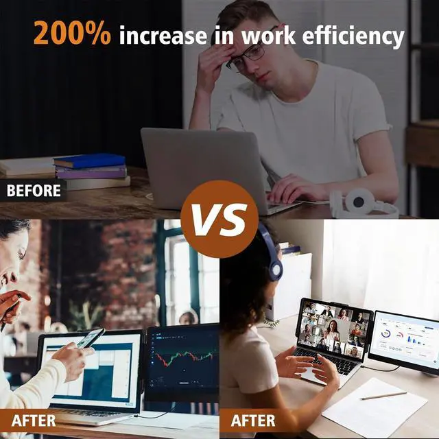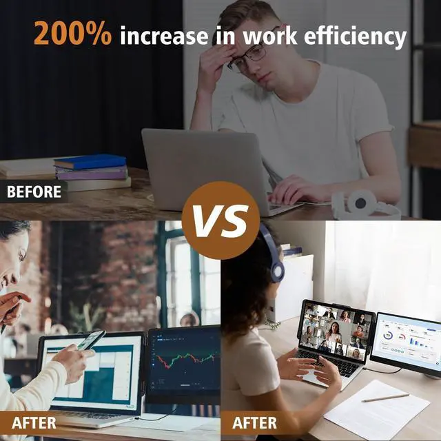 Efficiency increased by 200%: The extra screen for laptop supports expansion, mirror, and second screen modes. Ideal for presentations and multitasking, it lets you open multiple windows across screens for work, video calls, or entertainmenteliminating constant switching. Boost efficiency by up to 200%, it's perfect for people working on the go, gamers, finance and investment professionals, designers, and anyone who needs a more efficient workflow. ^^ Portable and