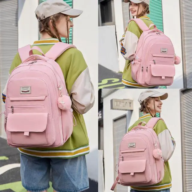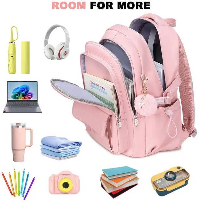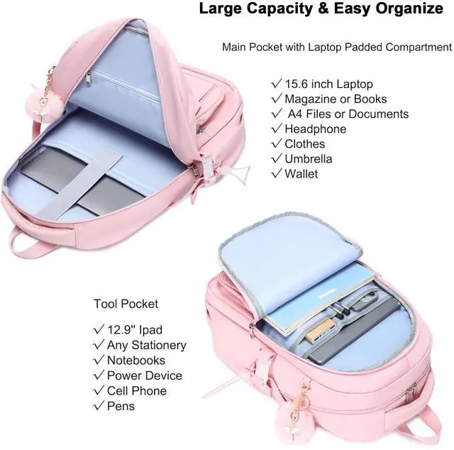 Large Size & Gift: The size of back pack is 18.5" x 12.2" x 5.9" (H*L*W), Weight: 1.65 LB. The laptops bag with padded compartment sleeve fit for 13.3, 14, 16 inch tablet. This women book bag also along with fluffy ball key pendant as gift makes the bags more fashionable and unique.