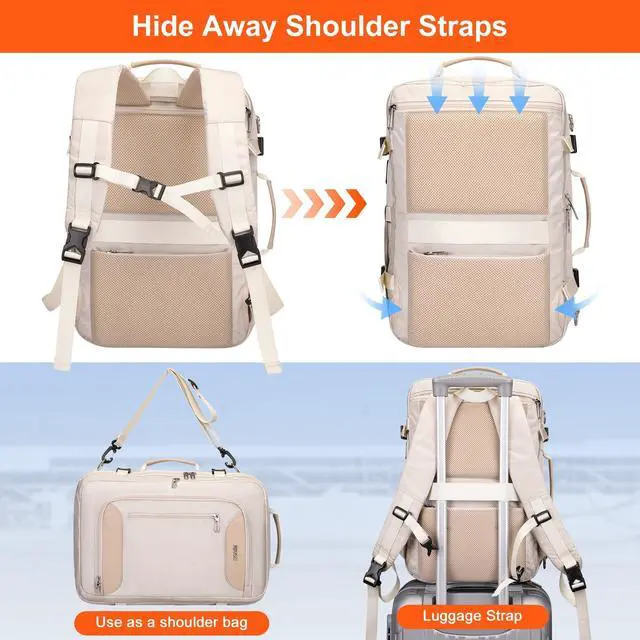 ^^ Varied Carry Ways: This luggage backpack is made with padded shoulder straps that can be hidden away in the back, It also has 1 top handle, so you can easily switch it from a backpack to a duffle bag. Additionally, it comes with a long strap that turns the duffel bag into a shoulder bag. The multiple carrying options of the backpack enhance the convenience of your trip. ^^ Large Capacity and