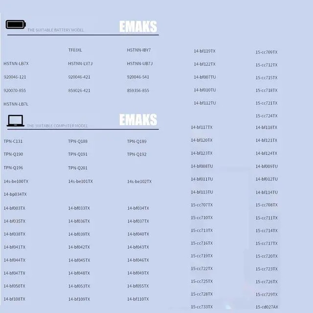 Compatible Part Number: HP 920046-121 920046-421 920046-541 920070-855 HSTNN-IB7Y HSTNN-LB7J HSTNN-LB7X HSTNN-UB7J TF03041XL TF03XL TPN-Q188 TPN-Q189 TPN-Q190 TPN-Q191 TPN-Q192 TPN-Q196 ^^