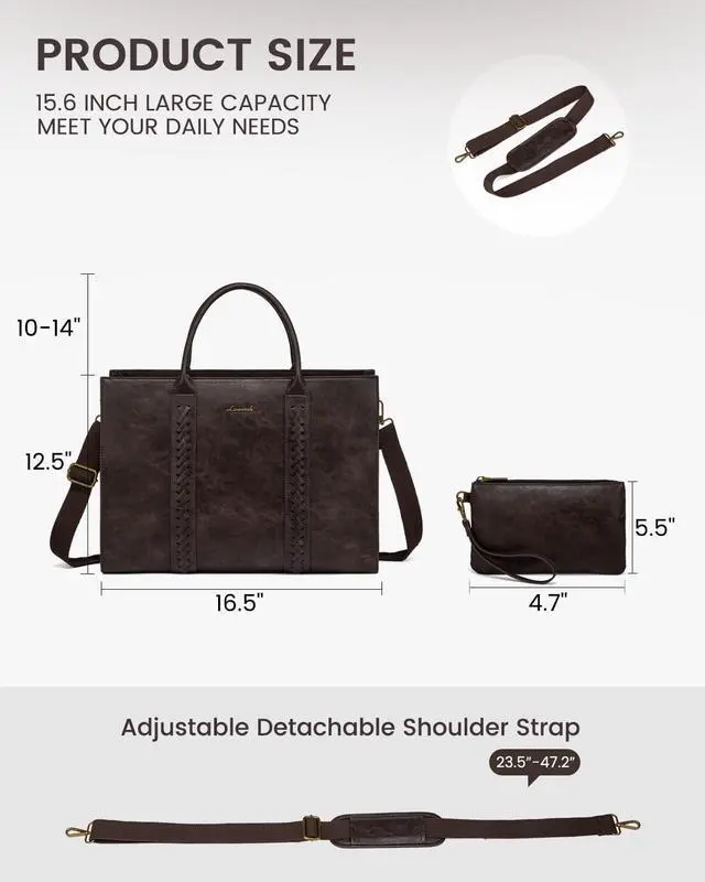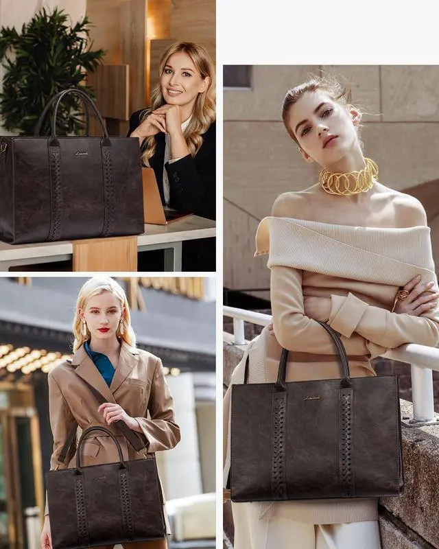 Perfect Size Laptop Bag: Measuring 16.3" x 6" x 12", this multi-pocket leather tote bag boasts ample space with a thick padded laptop compartment (For 13"/14"/15"/ 15.6" laptops), tablet slot, and various pockets for great organization, ensuring a secure and organized commute, daily use or business trip. Designed for the professional modern woman, the leather laptop bag for women marries elegance with functionality. ^^