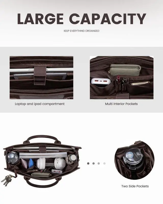 Waterproof Leather Work Bag: Crafted from waterproof high-quality leather, the work bags for women exemplifies durability with exquisite workmanship. Designed for versatility, it features a long strap with shoulder pads for extended wear comfort, easily transitioning from a briefcase to a shoulder crossbody bag, epitomizing timeless fashion & vintage for the daily work or travel. ^^