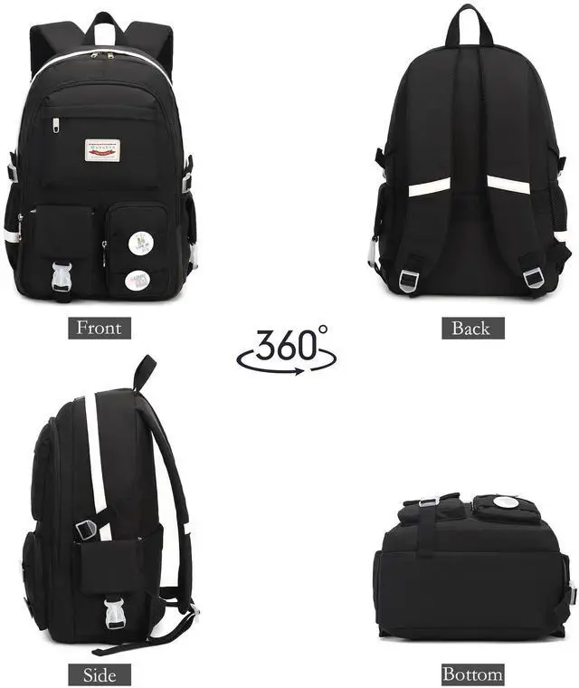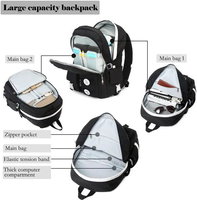 ^^ Structure: Interior - Main compartment contains 1 zippered pocket, 1 laptop compartment. Front combination pocket contains 2 pen sleeves, 2 open pockets for cell phone or other items, and an iPad pocket. Exterior - 2 side pockets for water bottles and umbrellas, 1front zippered pockets for easy access to essentials, 2 small front pockets, you can put rechargeable batteries and other items, and a back zippered pocket.