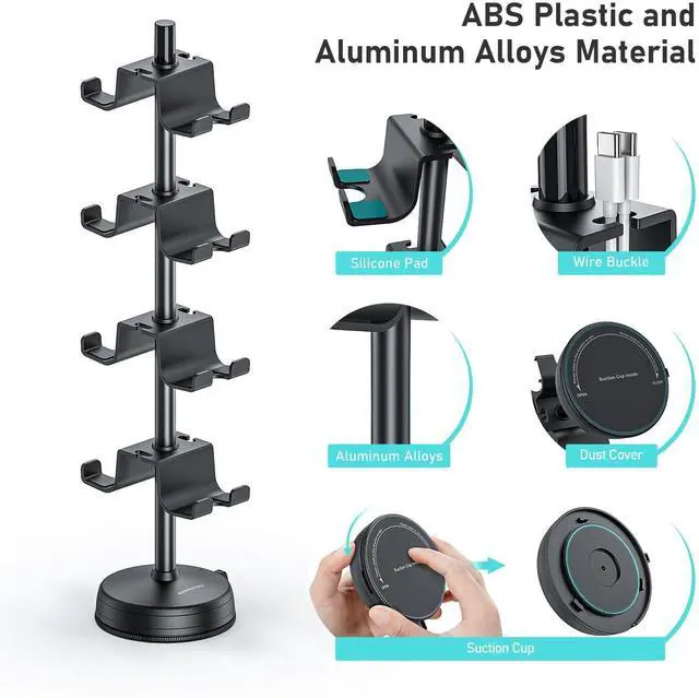 as: PlayStation PS5/PS4/PS3/PS2, Xbox One, the Xbox Series X/S/Elite, etc. This universal game controller stand can be placed on the table to use as you go, without worrying about being knocked over, so that your gaming space is undisturbed and organized. ^^ Exclusive Design Super Sturdy and Durable Suction Cup Stand The display stand is equipped with a super non-slip suction cup base, the suction cup base provides super solid suction to keep the stand firmly fixed on your desk, stronger than ordinary non-slip bases, so game controller won't be knocked over when you put it on the stand. You can adjust the use of suction cups or trays to secure the stand as needed. Every gamer deserves to own. ^^ Super Easy to Assemble and Use Without Tools This detachable controller stand is very sturdy and easy install, no tools or helpers needed, just put the parts together, align the holes for installation and you have a complete controller stand. If you want to organize and display your game controllers, this universal controller suction cup stand is highly recommended. ^^ ABS Plastic Aluminum Alloy MaterialMANMUVIMO controller stand is specially designed for controllers, controller holder placed on the desktop will be very stable.