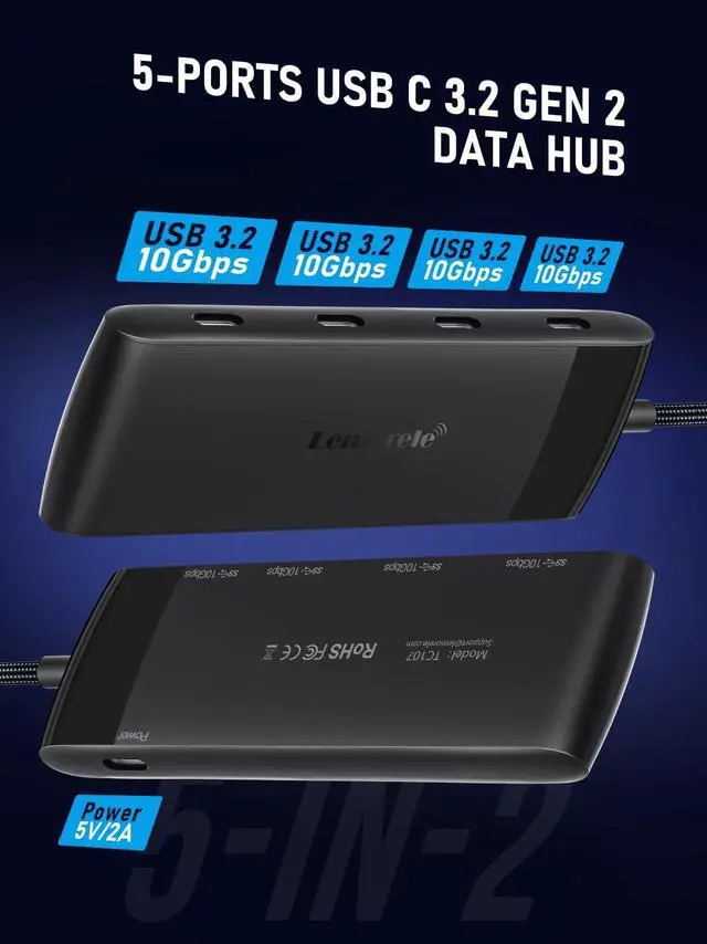 Efficiently! (Note: please make sure your output and input devices all support 10Gbps ^^ [4 Port USB C Data Ports Hub Adapter ]- This USB 3.2 Hub has 4 USB C ports to Easily Connect Multiple Type-C Devices such as HDD, SSD hard drive case and USB drives to your laptop through USB C and quickly transfer files to meet your daily needs! (connected to two and more need to connect the power supply ) ^^ [Plug and Play] - This USB C to USB C Hub is small and light weight, you can carry it around in your backpack, pocket, computer bag, etc., perfect for you to use in travel, home, office, etc. And it is plug and play, no need to install extra drivers. ^^ Stable and Secure- This USB C Hub is adopting a stable and safe design, which ensures stable and secure data transmission. It provides over-voltage, over-current, and short-circuit protection that ensures no harm to your device. The power port supplies power when the USB hub is connected to SSD/HDD, Using this Power port for increasing the hub's output power will make data be stable.