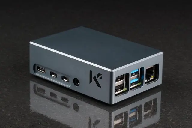 CNC-MACHINED ALUMINUM HOUSING: KKSB Cases has developed a case from a solid piece of aluminum that is designed for the Raspberry Pi 4. The surfaces are gray anodized and CNC machined.