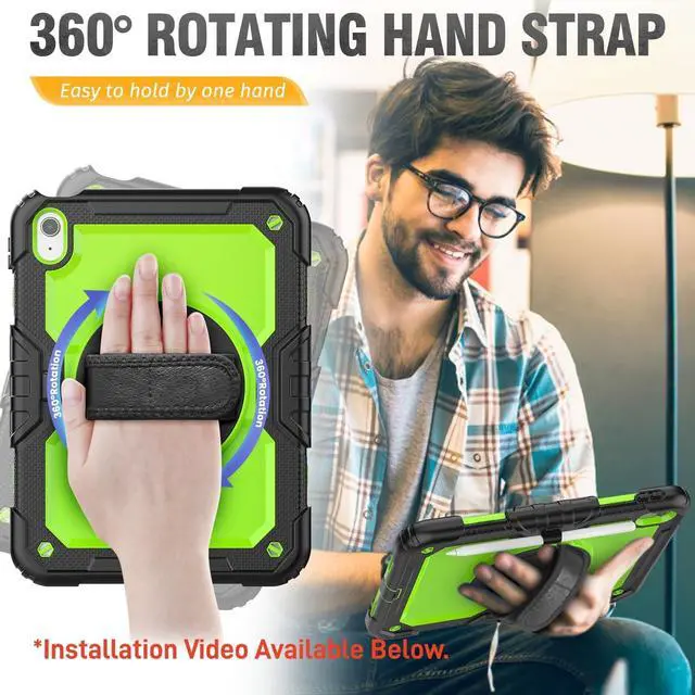 Model Number: A2696 / A2757 / A2777 / A3354 / A3355 / A3356. The Pencil is NOT included, and you can find step by step install instruction video in our store. ^^ Shockproof Designed with Screen Protector This ipad 11th/10th gen case designed with durable anti shock material, soft silicone, hard PC frame, (with 2 front covers, one with built-in screen protector and one without, you can use your own protector if you want). Durable 2025 ipad case always keep it safe from shock, drop, scratch or accidental damages in daily use, also ideal for kids, school students, business, work outdoors, use for restaurant order, travel around, etc. ^^ 360 Rotating Hand Strap & Stand This ipad 11 case / ipad 10 case provides a stable supports, with viewing/drawing/typing angles. You can hold safely by one hand and find the most comfortable viewing angle you need, also the stand can be folded up when not in use. ^^ Multifunctional Carrying Strap Detachable and adjustable shoulder strap, both kids and adults can carry the i pad A16 case around.