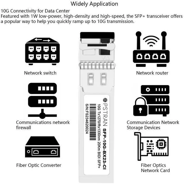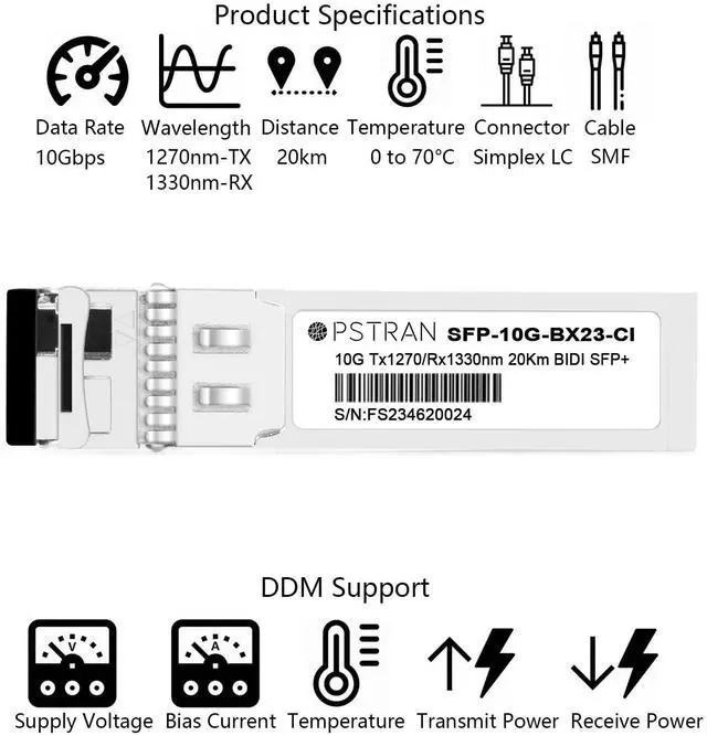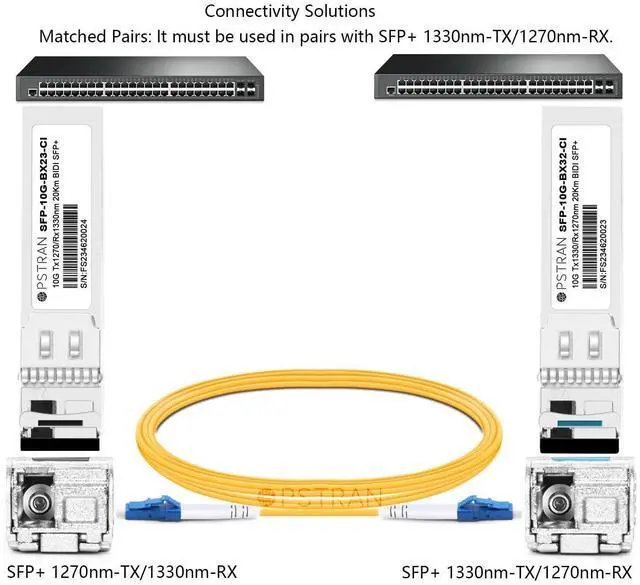 Matched Pairs: It must be used in pairs with SFP+ 1330nm-TX/1270nm-RX. Double Your Bandwidth by Using Only One Fiber for Transmit and Receive ^^ Tested in Targeted Switches for Superior Performance, Quality, and reliability. We owns compatibility LAB facilities to meet the EEPROM coding and writing requirements with various brands of the latest and advanced networking equipments to ensure the reliability. ^^ Build-In Real Time Digital Optical Monitoring Capability for Strong Diagnostic capabilities ^^ Compliant with SFP+ MSA and SFF-8472 with simplex LC receptacle, Laser Safety and RoHS Compliant ^^ Built-in high performance Chip, Max. Power Consumption 1W