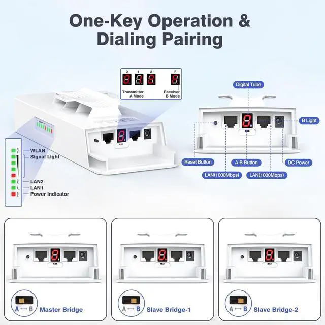 Get ready to enhance your network coverage with this powerful bundle! Featuring a high-performance Outdoor Wi-Fi Access Point and a CPE Wireless Bridge 3-Pack, this combination ensures seamless Wi-Fi extension and long-range connectivity for a variety of outdoor applications. Perfect for farms, campuses, warehouses, construction sites, and remote areas, this bundle guarantees high-speed wireless transmission, easy installation, and weatherproof durability. The Outdoor Wi-Fi Access Point offers 1200Mbps dual-band speed and is designed to withstand the harshest weather conditions, while the CPE881 Wireless Bridge Kit supports 5km range and provides dual 1Gbps LAN ports for fast, wired connections.