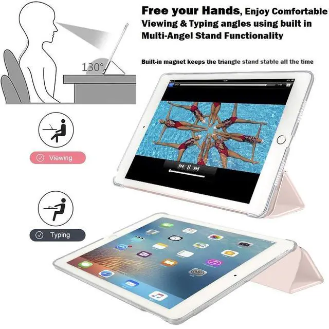 [Smart Auto Sleep/Wake Function] - This is a smart Case with Automatic Sleep/Wake feature (Sleeps when Closed and Wake when the lid is opened) ^^ [TriFold Stand Feature] - The Tri-Fold front provides you two standing positions for viewing or typing need. ^^ [Full Protection] - Anti-Scratch PU leather front with PC back cover are lightweight and durable to protect your device from scratches and shocks. ^^ [Precise cutouts & 100% Fit] - Precise cutout and design allow easy access to all ports, sensors, speakers, camera port etc.