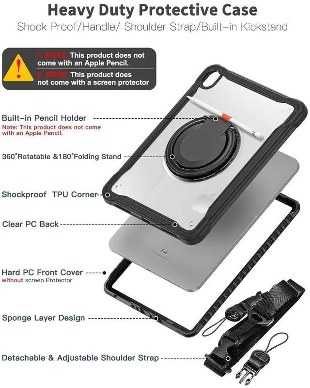 Note: This Tablet Case Does Not Include a Screen Protectornor does it include the Apple Pencil. ^^ Ring Stand &