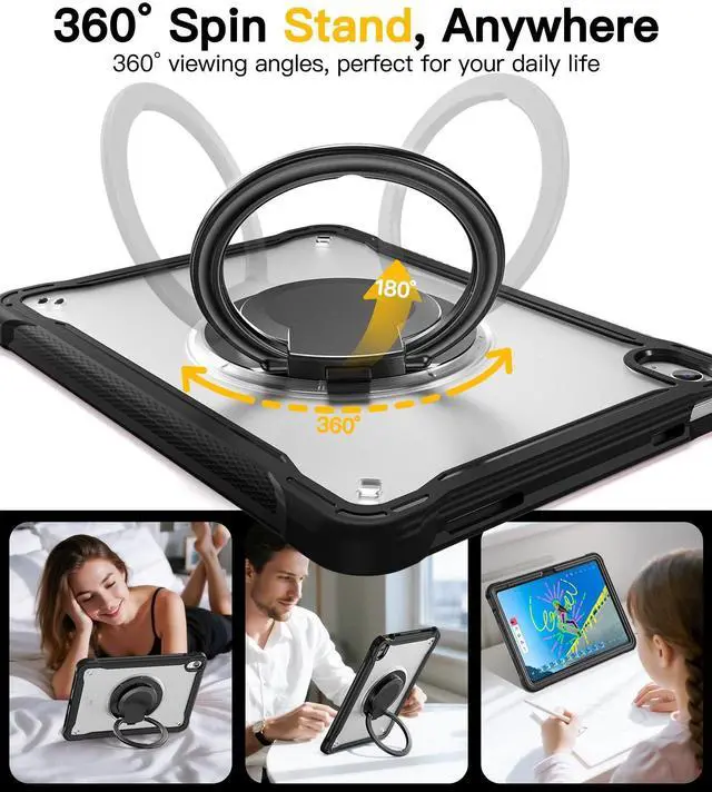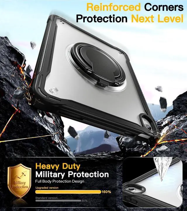 Portable Shoulder Strap: This ipad case 11/10th generation, with Original 360 rotation ring kickstand, can be 180 folded, can support you to hold, hanging, Stand, multi-angle all-round use of your ipad. Multi-functional shoulder strap allows you to carry your iPad during outdoor activities or traveling. ^^ Lightweight Design, Military