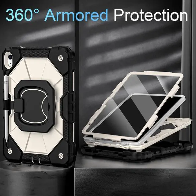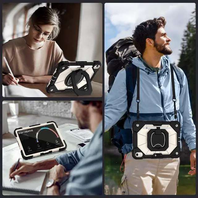 Number: A2696/ A2757/ A2777). Not fit any other iPad! ^^ 360 ROTATING STAND PENCIL HOLDER iPad case 10th generation with a rotating handle that also folds 180 to give you multiple angles between 25-85 degrees of horizontal or vertical orientation, iPad 10.9 case with pencil holder. Also offers hand hold and hung on wall using by handle function, allow you use or carry much easier, perfect for a variety of people and occasions. ^^ MULTIFUNCTIONAL CARRYING STRAP 10.9 inch ipad case 10th generation with adjustable shoulder strap will allow you to display your iPad behind car head rest or hang it anywhere for your better entertainment, make your hands free. Perfect for traveling, outdoor activities. ^^ PREMIUM PROTECTION This iPad 10th case is made of shockproof PC & soft silicone(with built-in screen protector), so nice to touch, provides a better grip. Unique shock-proof design keeps your iPad better protected to avoid daily bumps, scrapes, defeat 99% accidental drops, unbreakable! ^^ PRECISE CUTOUTS All controls to easily access all iPad functions without taking your apple ipad 10th generation out of the case.