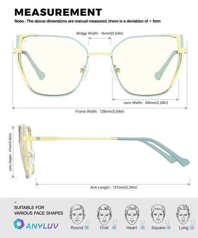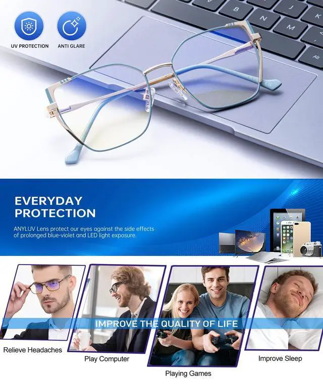 ^^ Reliable Customer Service: Fashion blue light sunglasses*1, microfiber pouch*1, blue light test kit*1, gift box*1. ANYLUV attach great importance to blue light glasses for women quality and customer satisfaction. Each customer can enjoy after-sale brand service for blue light computer screen glasses. With ANYLUV, you can trust that you are getting better in anti blue light glasses and service.