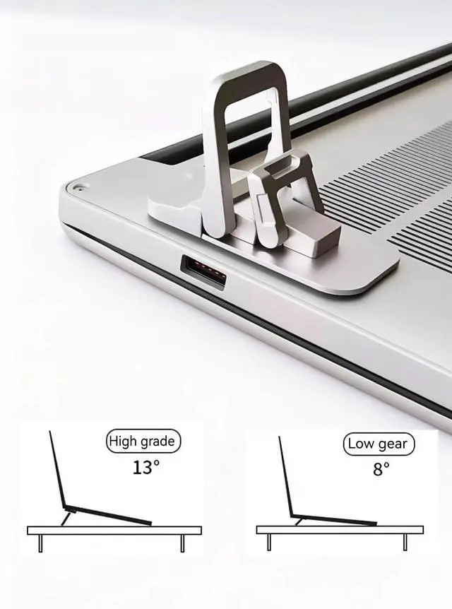 Compact and portable: This keyboard stand is very small, measuring only 2.36 * 1.18 * 0.39 in (approximately 6*3*1CM) and weighing only 1.5 ounces (approximately 43 grams). It attaches magnetically to the bottom of a laptop, taking up no space. It is easy to open and compact when folded up. ^^ Two adjustable angles to suit your needs: The portable stand has two angles that can be switched freely. The first angle is 3.5CM with an 8 viewing angle, and the second angle is 6CM with a 13 viewing angle. This ergonomically designed angle allows for comfortable use of your laptop screen, protects your cervical spine, and promotes a healthy office posture. ^^ Made of metal, sturdy