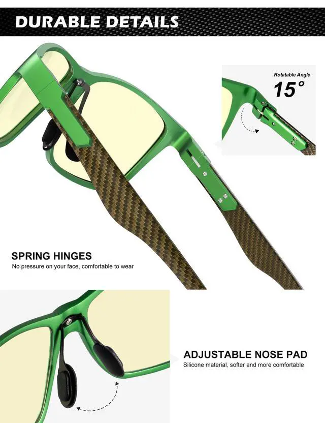 ^^ Premium Temple Material: With superior Al-Mg and carbon fiber composite temple, this type of blue light blocking glasses for men is ultra-light than pure metal frame, also more sturdy. No more worries about broken temples. As more suitable for anyone who often work or play games by the computer, do not miss this pair of practical and classic blue blocker glasses. ^^ Take Care of