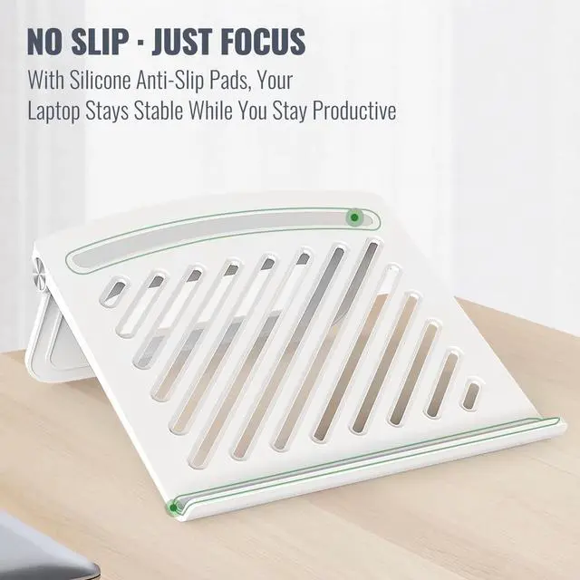 Non-Slip & Cooling Design: Our laptop tilt stand features premium silicone pads to prevent sliding, while open ventilation keeps your laptop cool and running smoothly ^^
