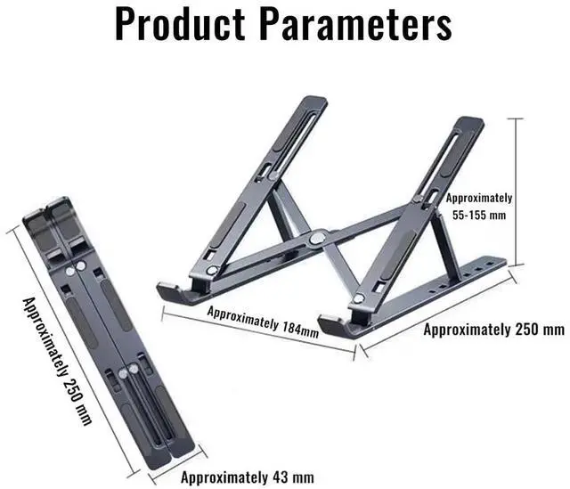 Foldable Stand: Suitable for laptops up to 18 inches, with 7 adjustable levels, allowing height adjustment from 55mm to 155mm ^^ Durable and