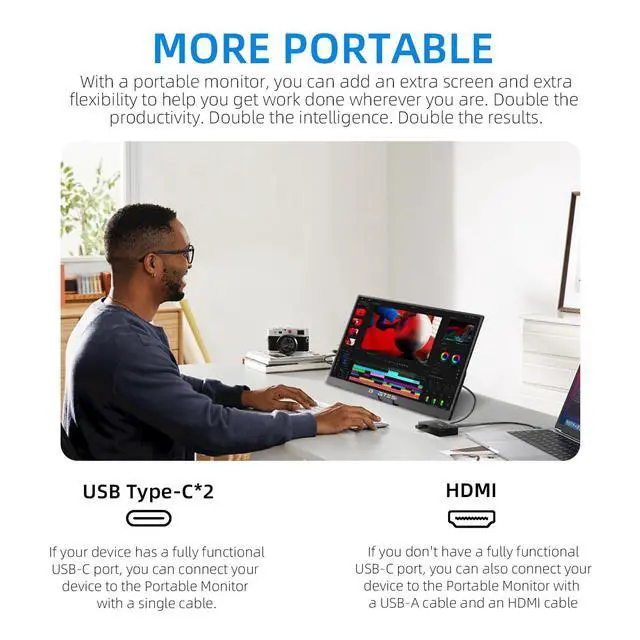 ^^ Wide Compatibility: The laptop portable monitor has a full-featured USB Type-C port and Mini-HDMI port, just a USB Type-C or MINI HDMI cable to easily access your favorite devices, suitable for most laptops, Smartphones, Mac, PC, Switch, Xbox, and more.