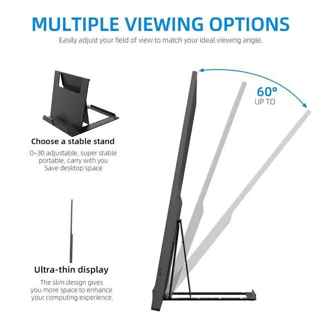 ^^ Multiple Display Modes: The portable computer monitor is plug-and-play, with multiple display modes - copy mode/extended mode/second screen mode. You can choose one of these ways and use it as a second screen to increase your productivity at work. You can also switch the horizontal or vertical viewing angle mode for a more comfortable sensory experience.