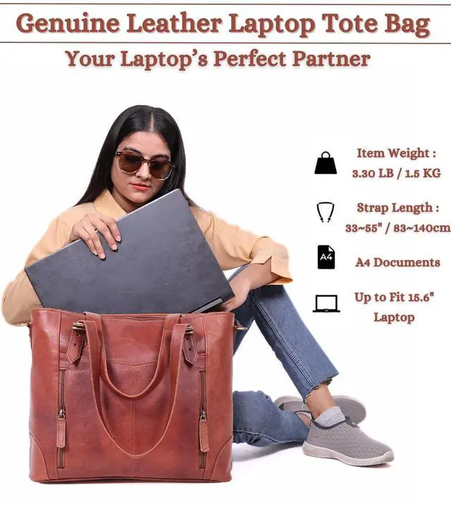 ALL-IN-ONE WORK TOTE BAG: Say Goodbye To Multiple Bags! This Genuine Leather Bags for Women is Your Perfect Work, Travel, and Business Companion. Designed To Fit a 17.3 -inch Laptop with Extra Space for Files, Books, and Daily Essentials, This Real Leather Tote Bag for Women Work Replaces Your Briefcase, Handbag, and Laptop Case. Whether You're a Teacher, Lawyer, Or Businesswoman, This Tote Bag Leather Blends Style & Functionality For All-day Convenience ^^