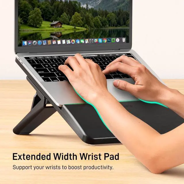 • Stable, Anti-slip & Wrist Protection:Crafted from high-quality materials, it supports about 4kg stably. Equipped with unique heightened rubber wrist pads to reduce wrist fatigue during typing, plus large rubber pads on the upper and bottom to prevent laptop falling and scratches on arms or tables. Suitable for office and home use, and makes an ideal Christmas gift for friends and family.