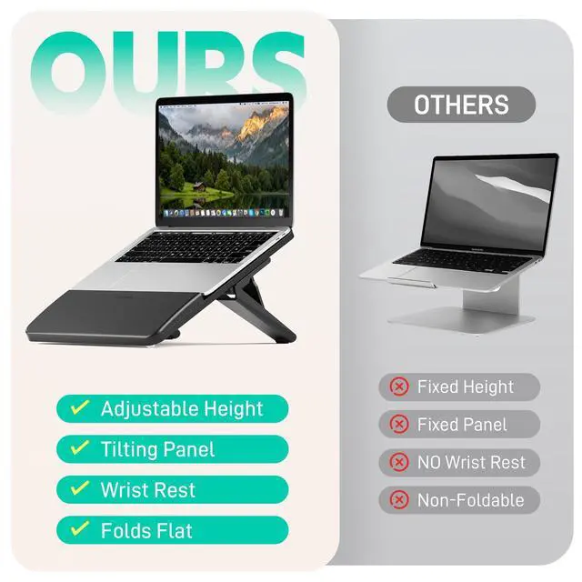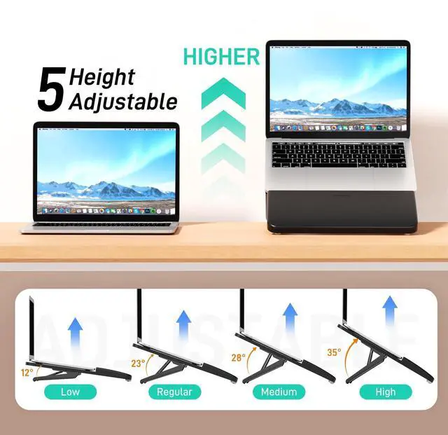 Ergonomic Design: Offers 5 adjustable angles to choose your preferred position, elevating the laptop to an ergonomic viewing level. It helps correct sitting posture, effectively alleviates neck and shoulder pain from long-term use, and enhances work/study comfort.