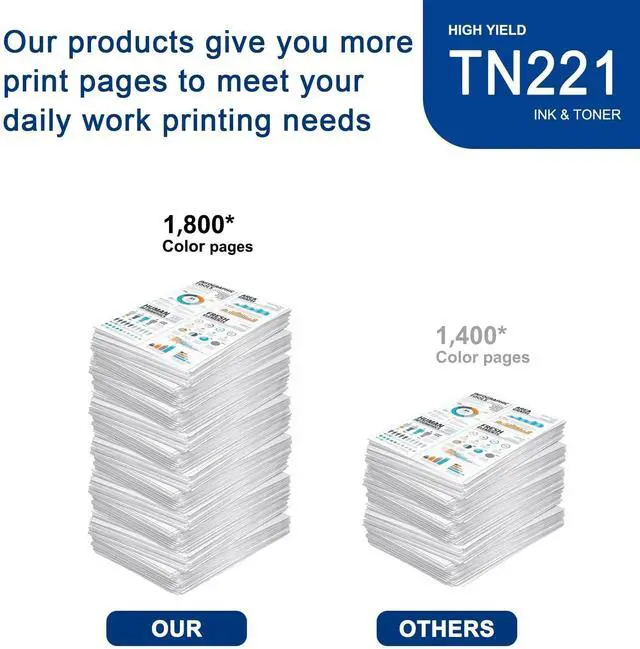 ^^ Page Yield: 1, 800 pages per TN221 Magenta Toner Cartridge at 5% coverage (Letter/A4). ^^ Compatible for