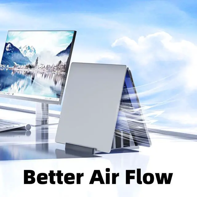 ^^ Ventilation: The stand's slotted design allows for optimal airflow, helping to prevent your laptop from overheating during extended use.