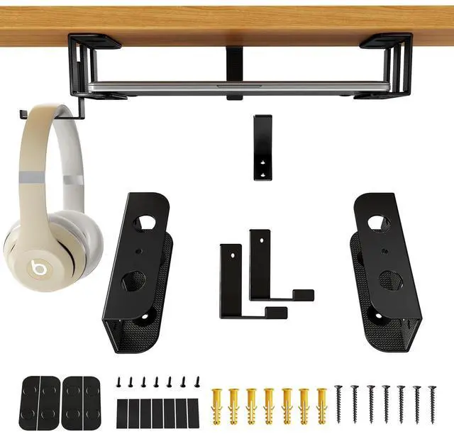 Storage Hook: This sturdy and durable headphone stand comes with 2 convenient storage hooks. In addition to securely storing headphones, it is also suitable for hanging cables and organizing wires, making the desktop more tidy. The bracket is designed with multiple installation holes, which can be flexibly installed according to usage needs. Its maximum load-bearing capacity is up to 10 pounds, stable and reliable, meeting various suspension needs ^^