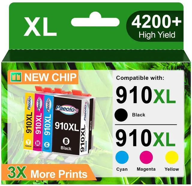 XL: Paeolos for HP ink 910XL black and color combo pack can deliver vibrant printing and clean text to meet your need. Long Time Non Fading, Fast printing speed and won't ruin or block the print head when use our 910 ink cartridges ^^