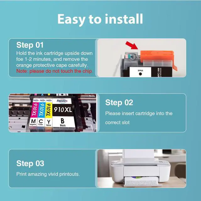 Printer Compatibility Models: Paeolos for HP 910XL ink cartridges combo pack, with the newsest upgraded chip and stable quality, recognized by your printer without errors, can work well for HP OfficeJet Pro 8020 printer ink cartridges 8025 8028 8035 printers, and for HP OfficeJet 8010 8015 8018 8022 printers ^^