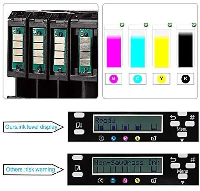 Compatible with Sawgrass SG400/SG800 Designed specifically for Sawgrass Virtuoso SG400 and SG800 printers, featuring a new upgraded chipset that accurately displays ink levels and seamlessly integrates with the latest firmware. No risk of printer errors or compatibility issues. ^^ Vibrant Sublimation Ink for Professional Results Achieve rich, fade-resistant colors on both hard (mugs, plates) and soft (polyester fabrics, vinyl) substrates. Expertly formulated dye powders and dispersing agents ensure bright blues, deep blacks, and true-to-life reds/yellows after heat transfer. ^^ Protects Your Printers Printhead Advanced ink formula prevents clogging and nozzle damage, even after 5, 000+ pages.
