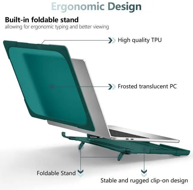 Model: A1502/A1425 ^^ TPU & PLASTIC EXTERIOR MATERIAL - Heavy duty rugged shockproof hard shell cover to resist scratches and skidding. Precise construction allows complete access to all ports, features, buttons and Touch ID function. ^^ FOLDABLE KICKSTAND FUNCTION For Macbook Pro 13 2023 2022 2021 2020 Case - Our protective case with built-in foldable kickstands, which can be viewed in two levels and enjoyed a better visual experience. Also it has micro clips that securely fastens to your laptop, and snaps off with easy when needed. ^^ Package Includes - The package includes a protective case, a keyboard cover, a set of dust plugs, and a screen protector to provide comprehensive protection for your device.