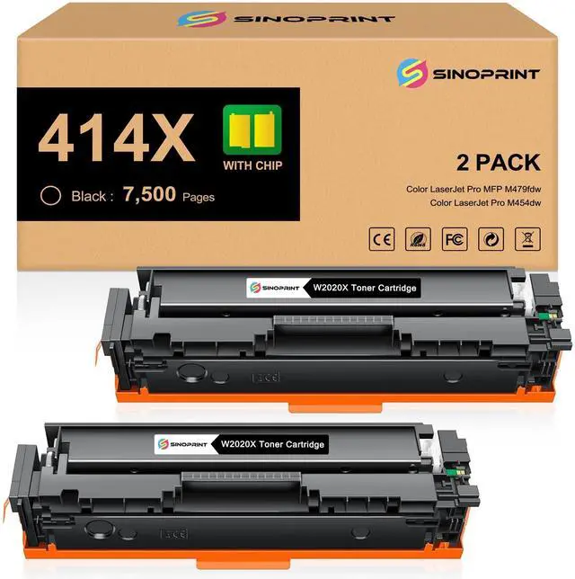 WITH CHIPThe 414X W2020X toner cartridge. NO need to switch the OEM chip to use. ^^ Compatible WithColor LaserJet Pro MFP M479fdw M479fdn M454dw M454dn M479dw. ^^ Packages Contents*2 Packs Remanufactured toner cartridge replacement for 414X W2020X WITH CHIP (Black). ^^ Page YieldUp to 7, 500 pages black toner cartridge (at 5% coverage). ^^ Order with ConfidenceSinoprint toner cartridge is destinated to design and offer great toner and make your work more efficient, ensuring crisp& sharp text.