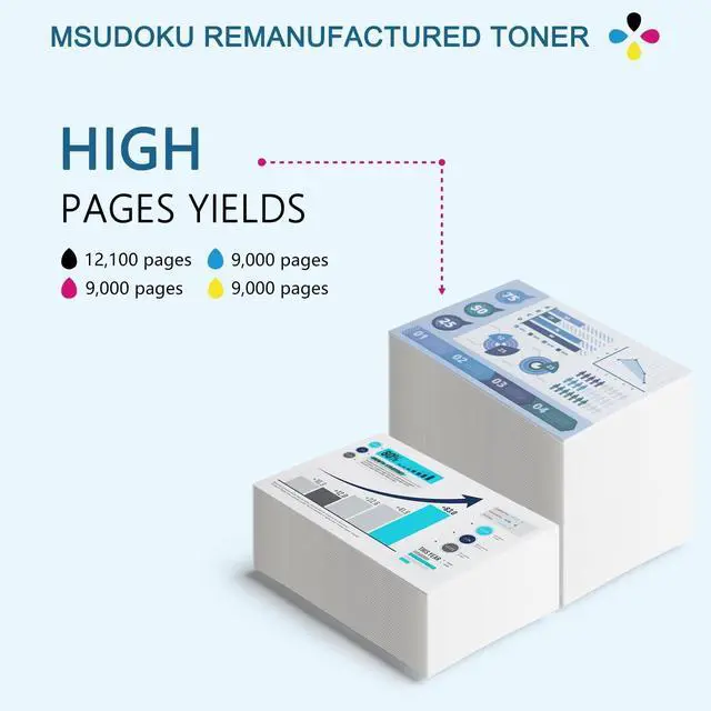 Toner Yield: 12, 100 lmages per versalink C500/C505 black toner cartridge, 9, 000 lmages per versalink C500/C505 colors toner cartridge (Estimated @ 5% coverage) ^^ 1 x versalink C500/C505 black toner cartridge, 1 x versalink C500/C505 cyan toner cartridge, 1 x versalink C500/C505 magenta toner cartridge, 1 x versalink C500/C505 yellow toner cartridge ^^