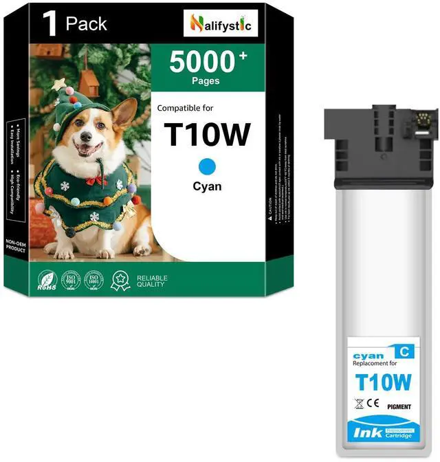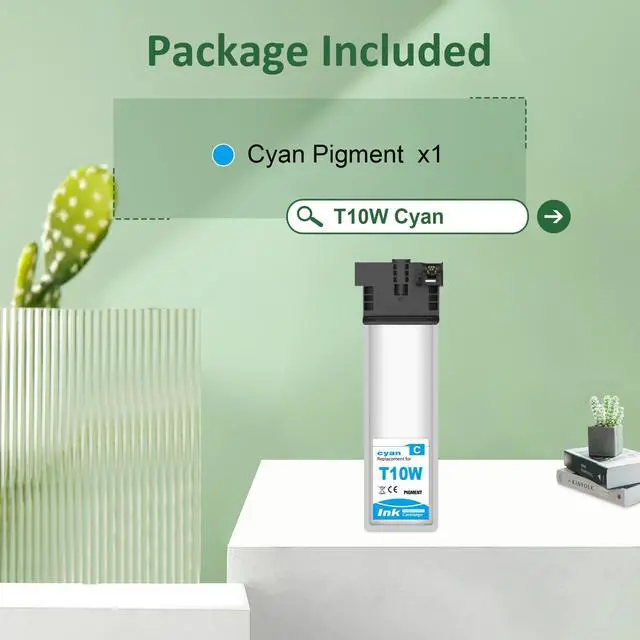 Remanufactured T10W Ink Cartridge Includes1 x T10W200 cyan Ink cartridge. ^^ Compatible Printer ModelRemanufactured T10W Ink Cartridges for WF-C5390 WF-C5890 WFC5390 WFC5890 Color Printers. ^^ Remanufactured T10W Approx. Page YieldThese remanufactured T10W ink cartridge replacement has up to 1, 000 pages and offer superior print performance and quality. ^^ Superior CompatibilityEach remanufactured T10W ink cartridge undergoes quality and functional tests before leaving the factory, ensuring the printing quality of the ink cartridge. Whether you print documents, presentations or charts, you will get reliable printing effect, just as if it won't damage the printer.