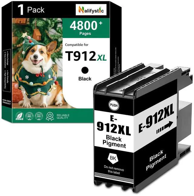 Remanufactured T912XL Ink Cartridge Includes1 x T912XL120 black Ink cartridge. ^^ Compatible for Printer ModelRemanufactured T912XL Ink Cartridges for Workforce Pro WF-C8190 WF-C8690 Color Printers. ^^ Remanufactured T912 XL Approx. Page YieldThese remanufactured T912 cartridge replacements for T912XL each have up to 8, 000 pages and offer superior print performance and quality. ^^ Superior CompatibilityEach remanufactured T912 ink cartridge undergoes quality and functional tests before leaving the factory, ensuring the printing quality of the ink cartridge. Whether you print documents, presentations or charts, you will get reliable printing effect, just as if it won't damage the printer.
