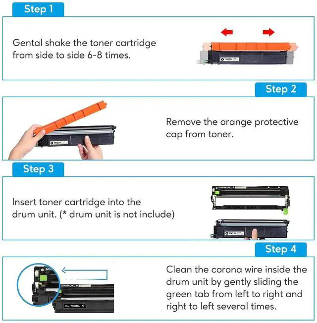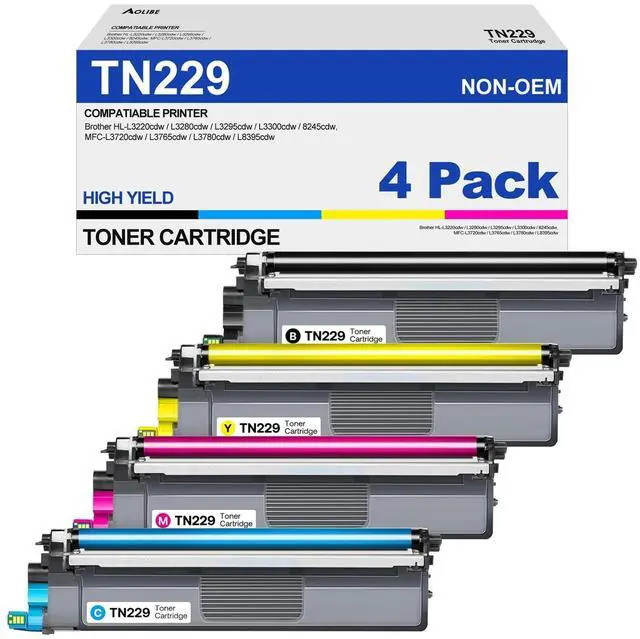 ^^ Package Contents: 1 x TN229XL black, 1 x TN229XL cyan, 1 x TN229XL magenta, 1 xTN229XL yellow, Total 4 pack. ( NON-OEM Cartridge).