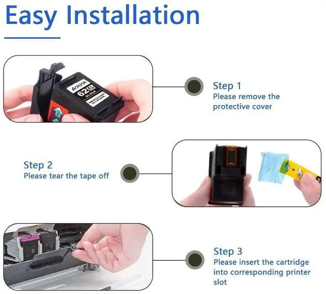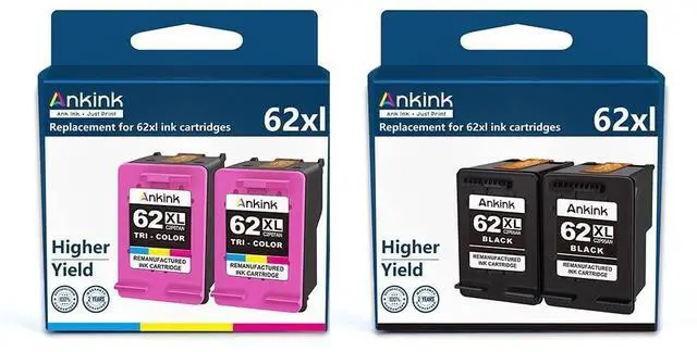 • Package Contents: 2 Pack Remanufactured Ink Cartridge Replacement for hp 62XL ink cartridges - 62 XL 2 Black 2 Tri-Color