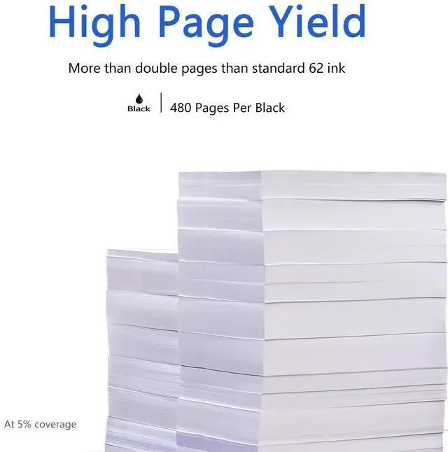 • High Page Yield: Up to 600 pages per 62 XL black cartridge & 450 pages per 62 XL tri-color Ink Cartridge at 5% coverage (A4 paper size)